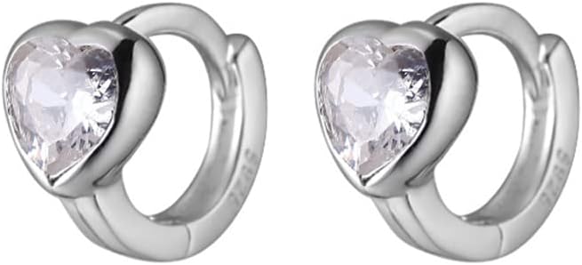 6mm Tiny Heart Cubic Zirconia Hoop Cartilage Earrings for Women Girls 925 Sterling Silver Hypoallergenic Small Huggie Hoops Cute Sleeper Earring Dainty Birthday Wedding Holiday Mother's Jewelry Gifts