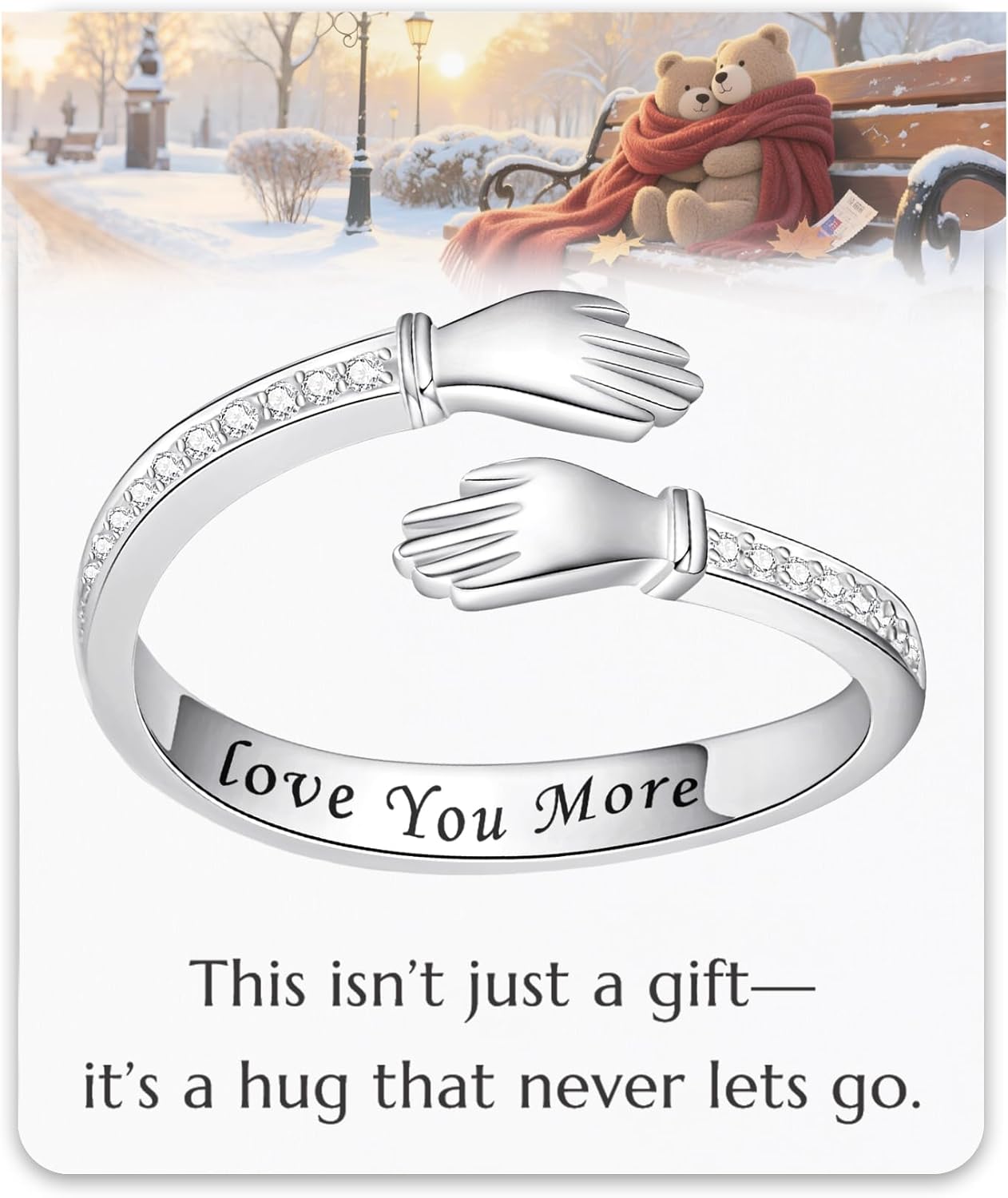 Hug Ring for Women Gift – 925 Sterling Silver Adjustable Open Band, Engraved “Always with you”, Sentimental Jewelry for Mom Daughter Friend