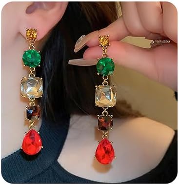Jumwrit Shiny Rhinestone Long Chain Earrings Vintage Teardrop Dangle Rectangle Geometry Earrings Dainty Bridal Wedding Statement Sparkle Chandelier Earrings for Women Girls