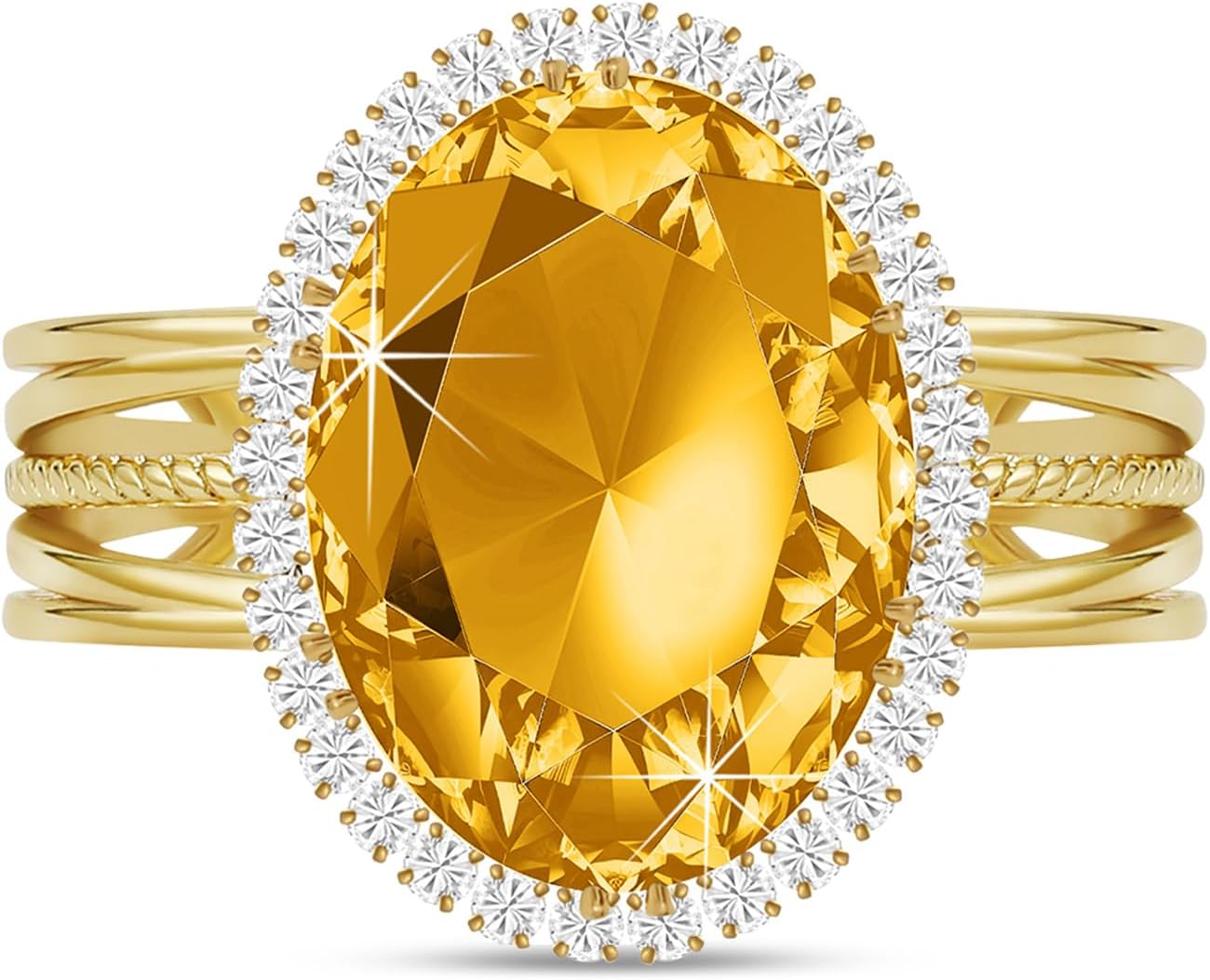 Linawe Birthstone Chunky Adjustable Rings for Women, Gold/Silver/Rose Gold Statement Rings, Imitation Diamond Fake Gemstone Crystal Cocktail Ring, Cubic Zirconia Costume Jewelry