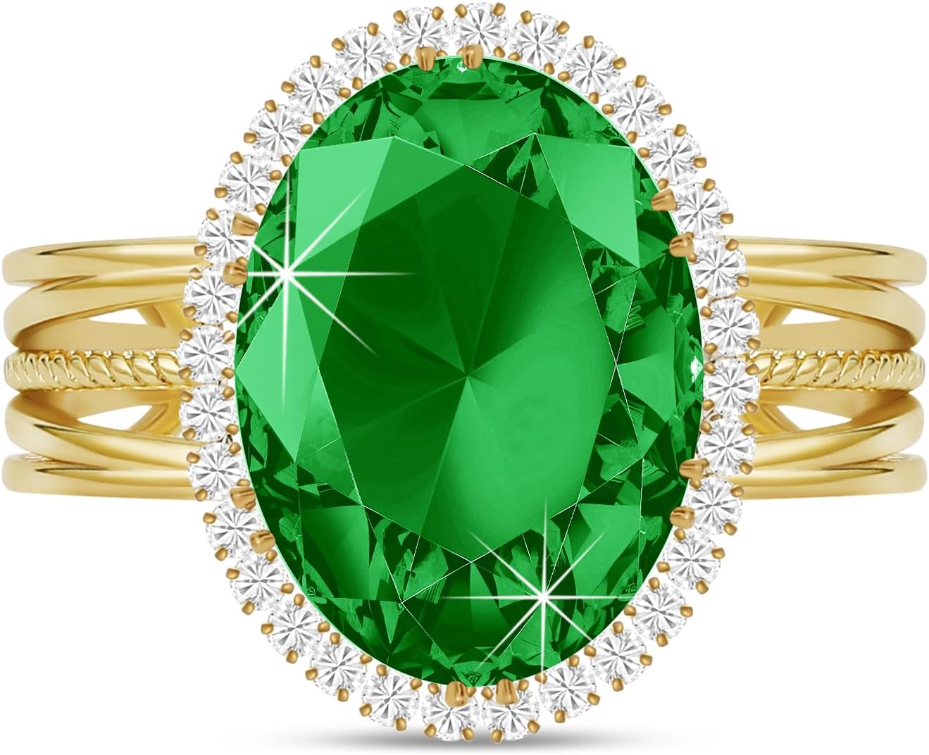 Linawe Birthstone Chunky Adjustable Rings for Women, Gold/Silver/Rose Gold Statement Rings, Imitation Diamond Fake Gemstone Crystal Cocktail Ring, Cubic Zirconia Costume Jewelry