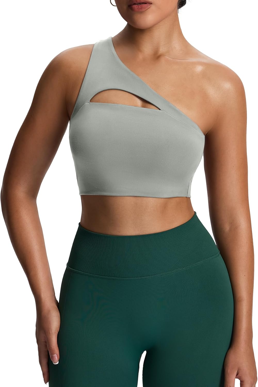 Aoxjox Women's Workout Sports Bras Fitness Gym Olivia Asymmetric One Shoulder Bra Yoga Crop Tank