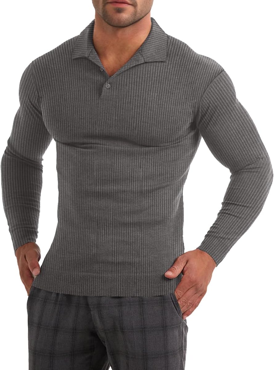 Muscle Cmdr Men's Slim Fit Muscle Polo Shirts Long&Short Sleeve Stretch Quick Dry Tee Casual Golf Athletic T-Shirts