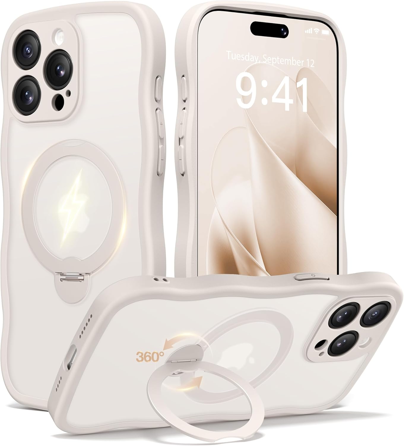 ![CAPRARO for iPhone 15 Pro Max Case with 360° Spin Magnetic Stand for Women, [Compatible with MagSafe] [Full Camera Protection] Cute Wave Translucent Matte Case for iPhone 15 Pro Max, Stone](https://m.media-amazon.com/images/I/71bppFzUv1L._AC_SL1500_.jpg)
