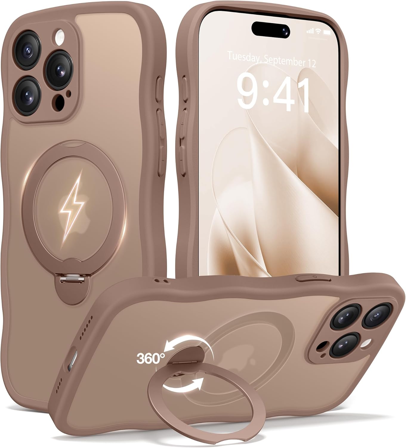 ![CAPRARO for iPhone 15 Pro Max Case with 360° Spin Magnetic Stand for Women, [Compatible with MagSafe] [Full Camera Protection] Cute Wave Translucent Matte Case for iPhone 15 Pro Max, Brown](https://m.media-amazon.com/images/I/717CWxtNyML._AC_SL1500_.jpg)