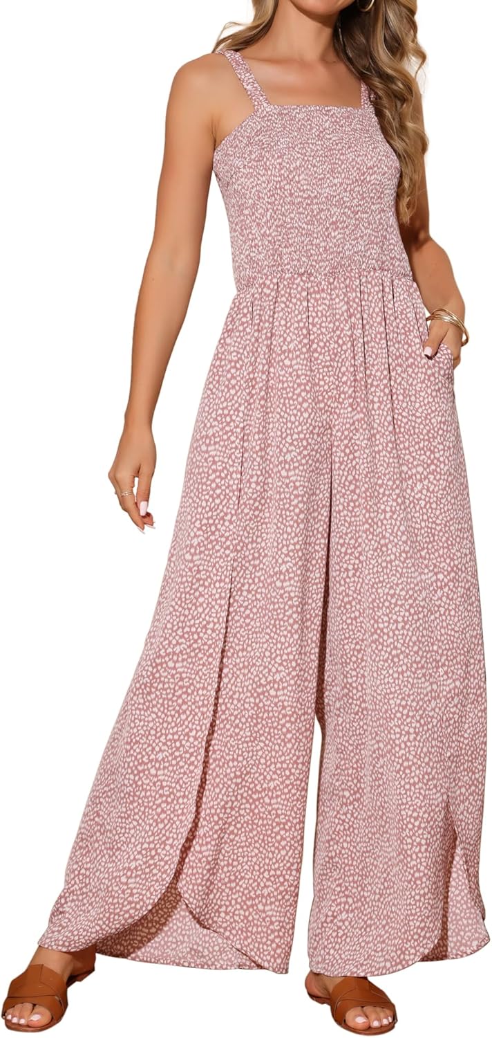 Seta T Women's Casual Loose Overalls Jumpsuits One Piece Sleeveless Split Wide Leg Long Pant Rompers with Pockets