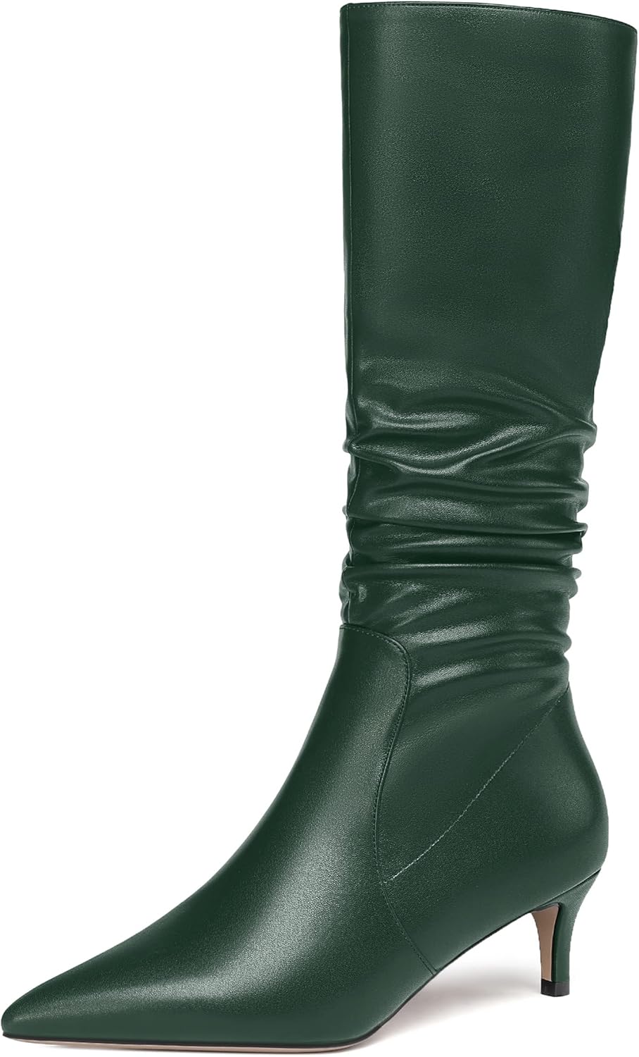 WAYDERNS Womens Dating Solid Zip Pointed Toe Fashion Matte Kitten Low Heel Mid Calf Boots 2 Inch