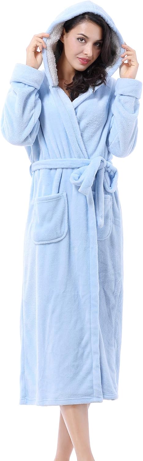 Catalonia Womens Plush Fleece Long Robe with Hood, Plus Size Warm Soft Fluffy Lightweight Bathrobe, Valentine's Day Gift