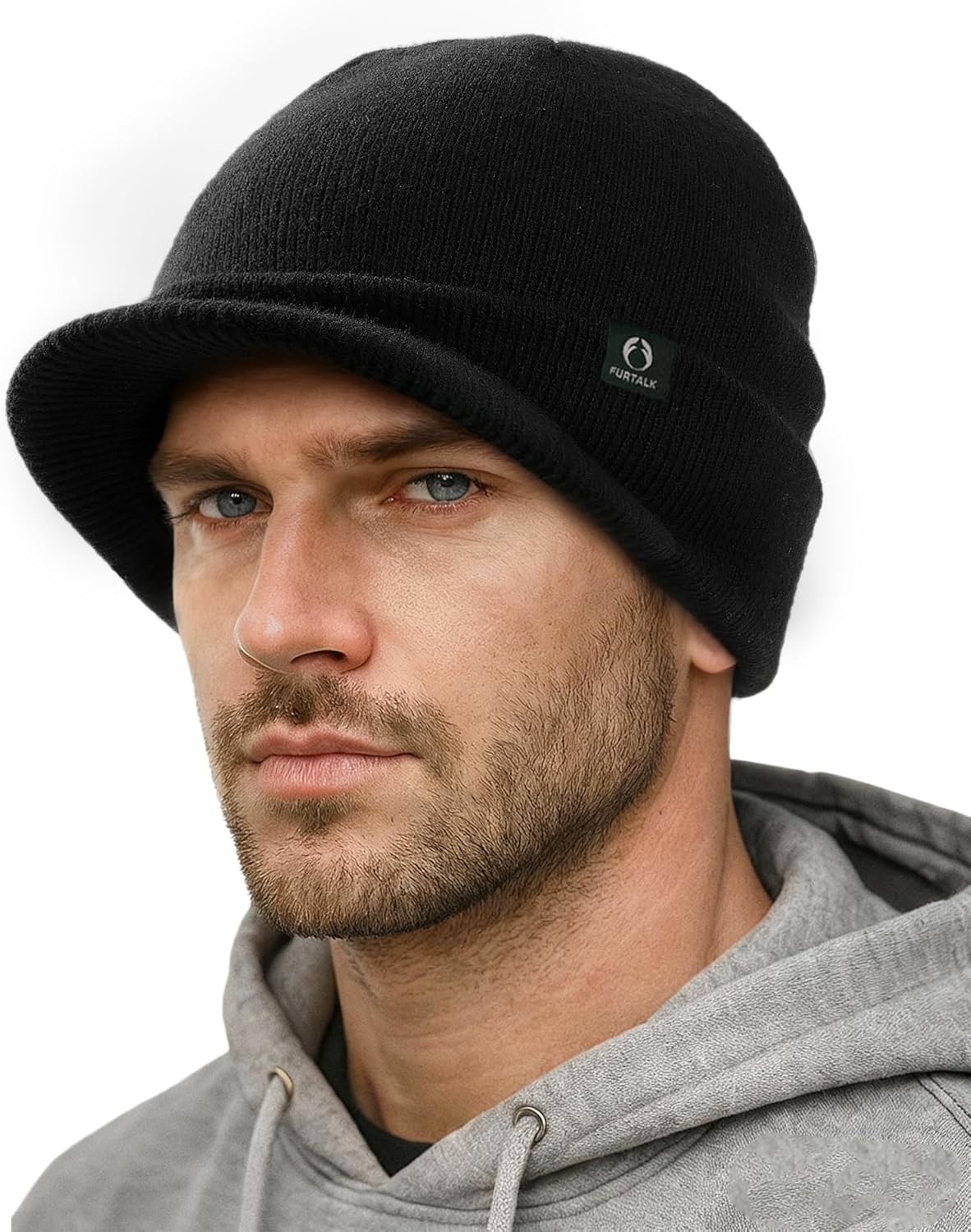 FURTALK Mens Beanie with Brim Thick Knitted Acrylic Beanie for Men Women Warm Outdoor Winter Hat