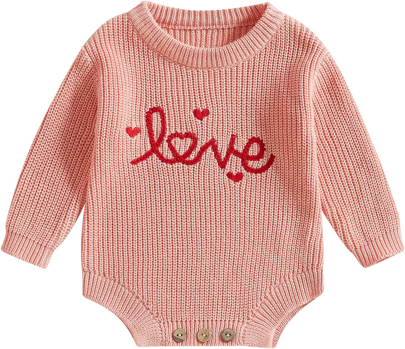 Baby Boy Girl Valentines Outfit Embroidery Sweater Bubble Romper Long Sleeve Knit Bodysuit One Piece Outfit