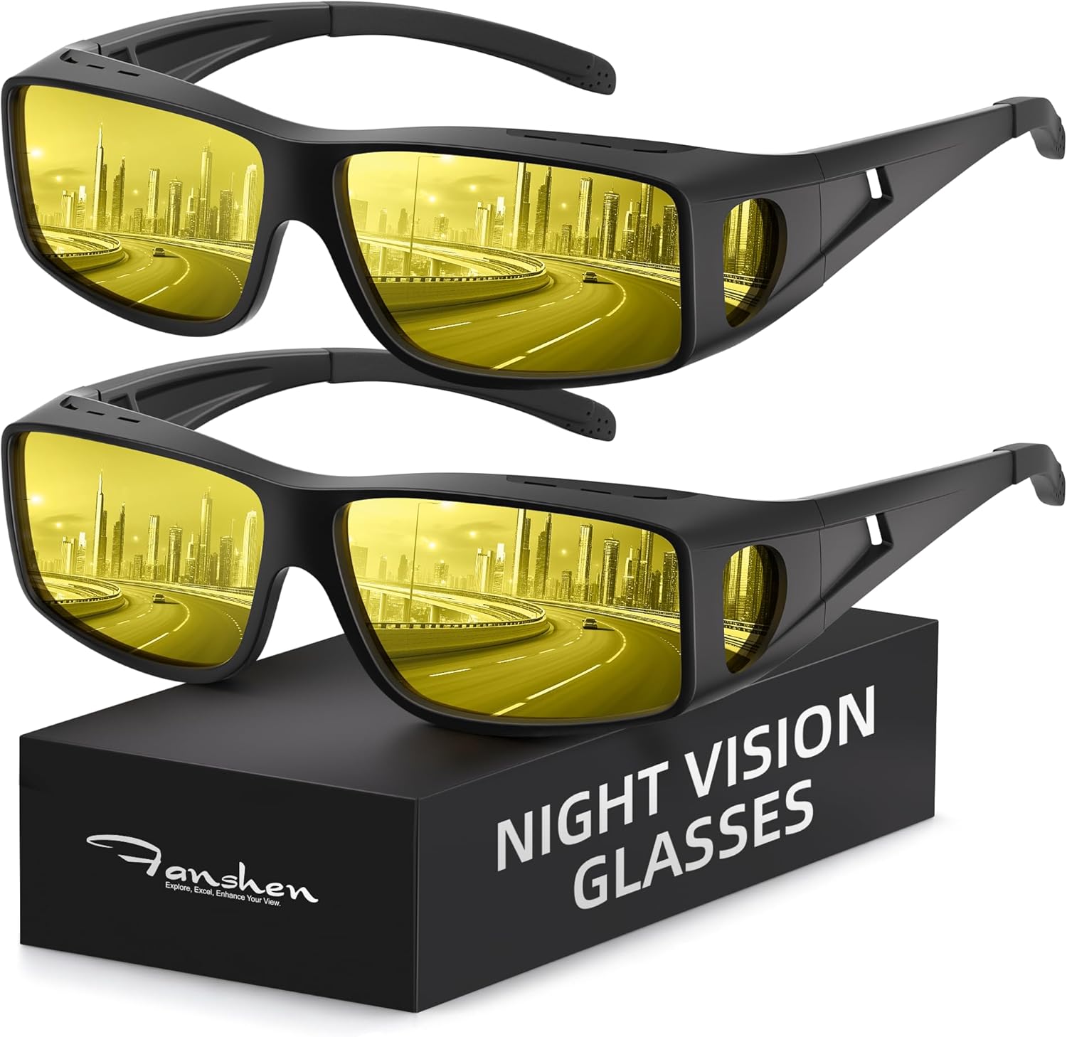 Fanshen Night Driving Glasses for Men Women, Fit Over Night Vision Glasses Anti Glare Polarized Lens with UV Protection