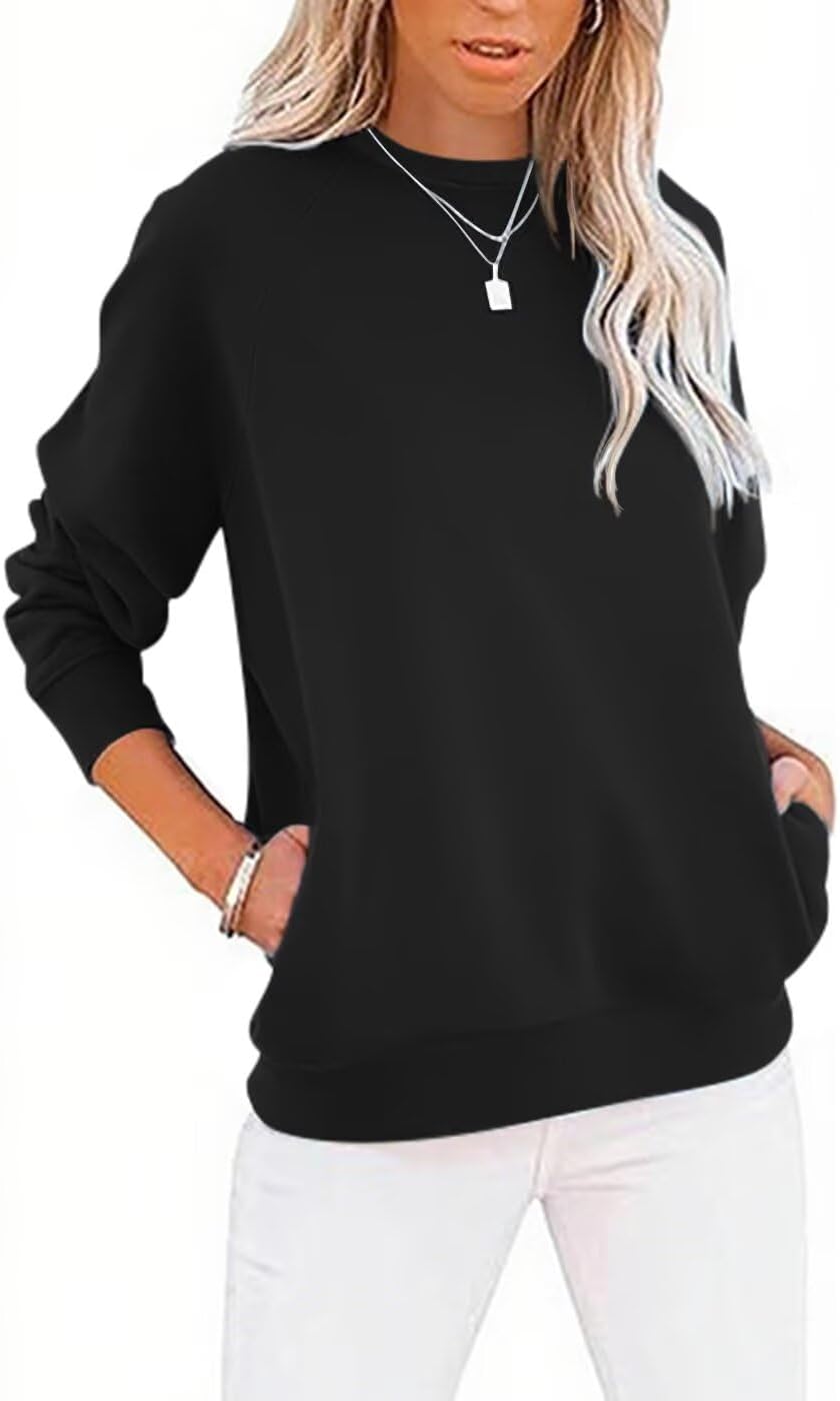 LEEDYA Women Long Sleeve Sweatshirts Crew Neck Casual Pullover Sweaters Loose Lightweight Solid Color Blouse Tops