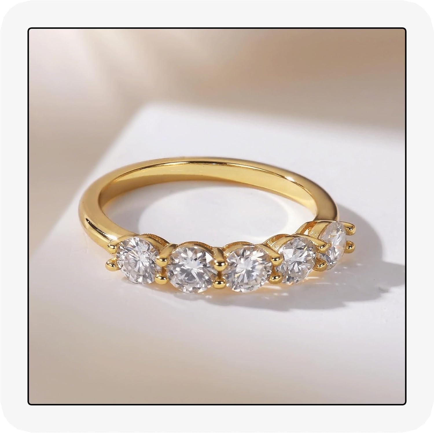 5 Stone Eternal Wedding Band Ring 14K Gold Plated 925 Sterling Silver Cubic Zirconia Stackable Ring Anniversary Promise Jewelry for Women Her Size 5-9