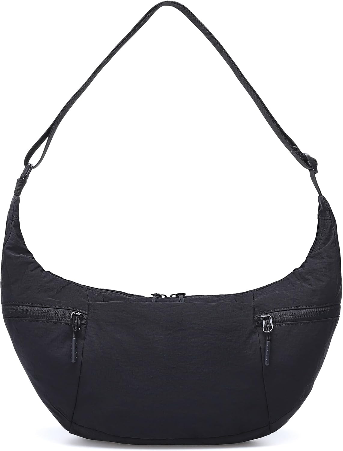 VONAL Nylon Crescent Crossbody Bag, Sloughy Shoulder Hobo Bag for Women, Lightweight Moon Bag Dumpling Sling Bag Purse