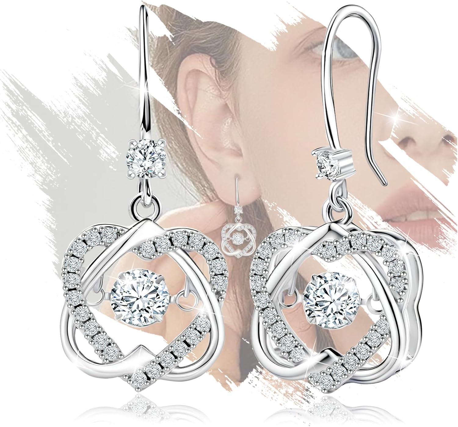 S925 Sterling Silver Heart Drop Earrings Sparkle Dancing Cubic Zirconia Love Heart Fish Hook Earrings Hypoallergenic Elegant Jewelry for Her Women Wedding Christmas