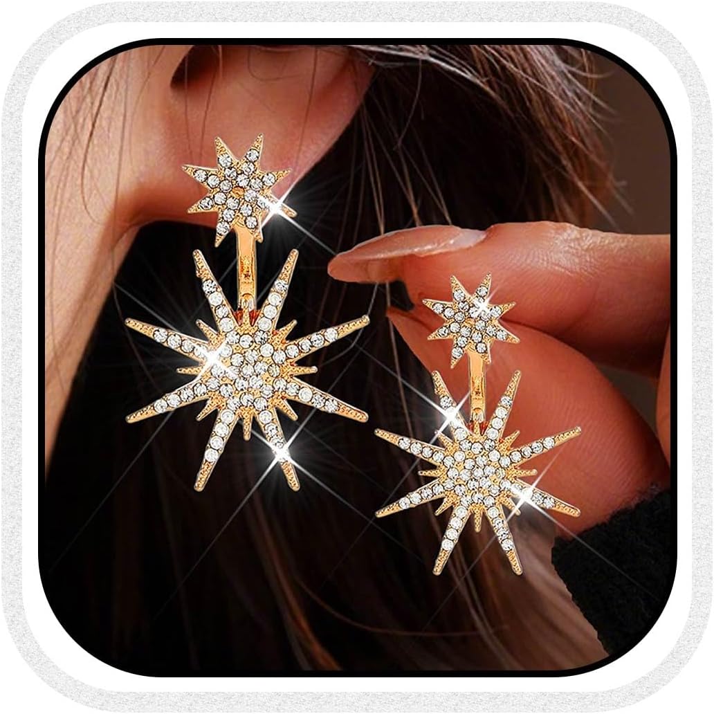 Catery Rhinestone Star Earrings Gold Celestial Earrings Dangle Drop Wedding Jewelry for Women