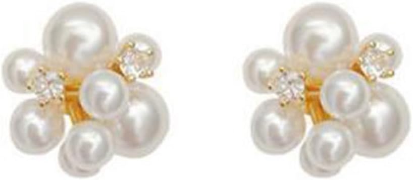 Unique Pearl Cluster Stud Earrings for Women,Statement White Simulated Pearls Earrings Wedding Bridal