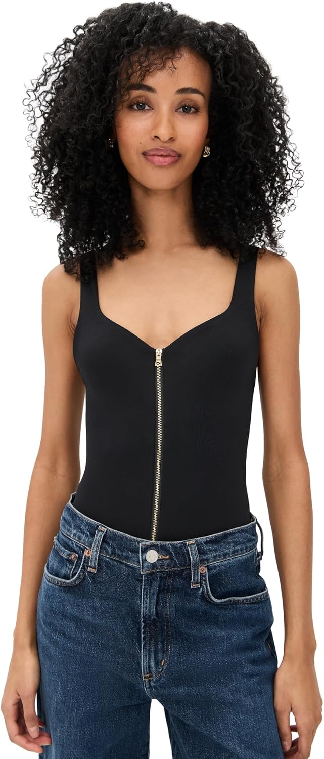 alice + olivia Women's Eve Zip Front Thong Bodysuit