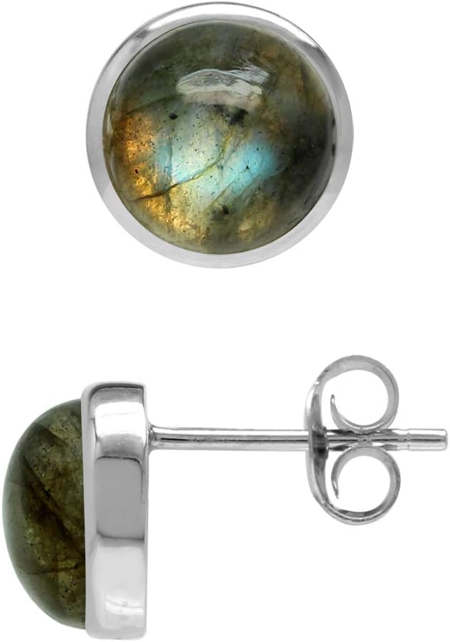 Silvershake 8MM Round Shape Cabochon Gemstone White Gold Plated or Yellow Gold Plated 925 Sterling Silver Business Attire Stud Post Earrings Jewelry for Women