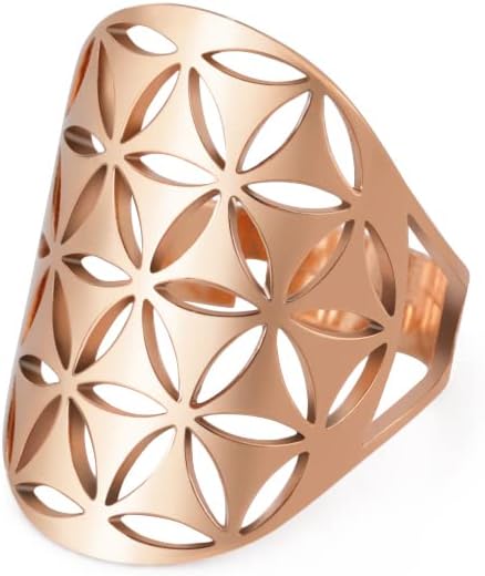 kkjoy Openwork Flower of Life Ring Stainless Steel Adjustable Open Finger Rings Promise Ring Jewelry Gift for Women Charming Ladies