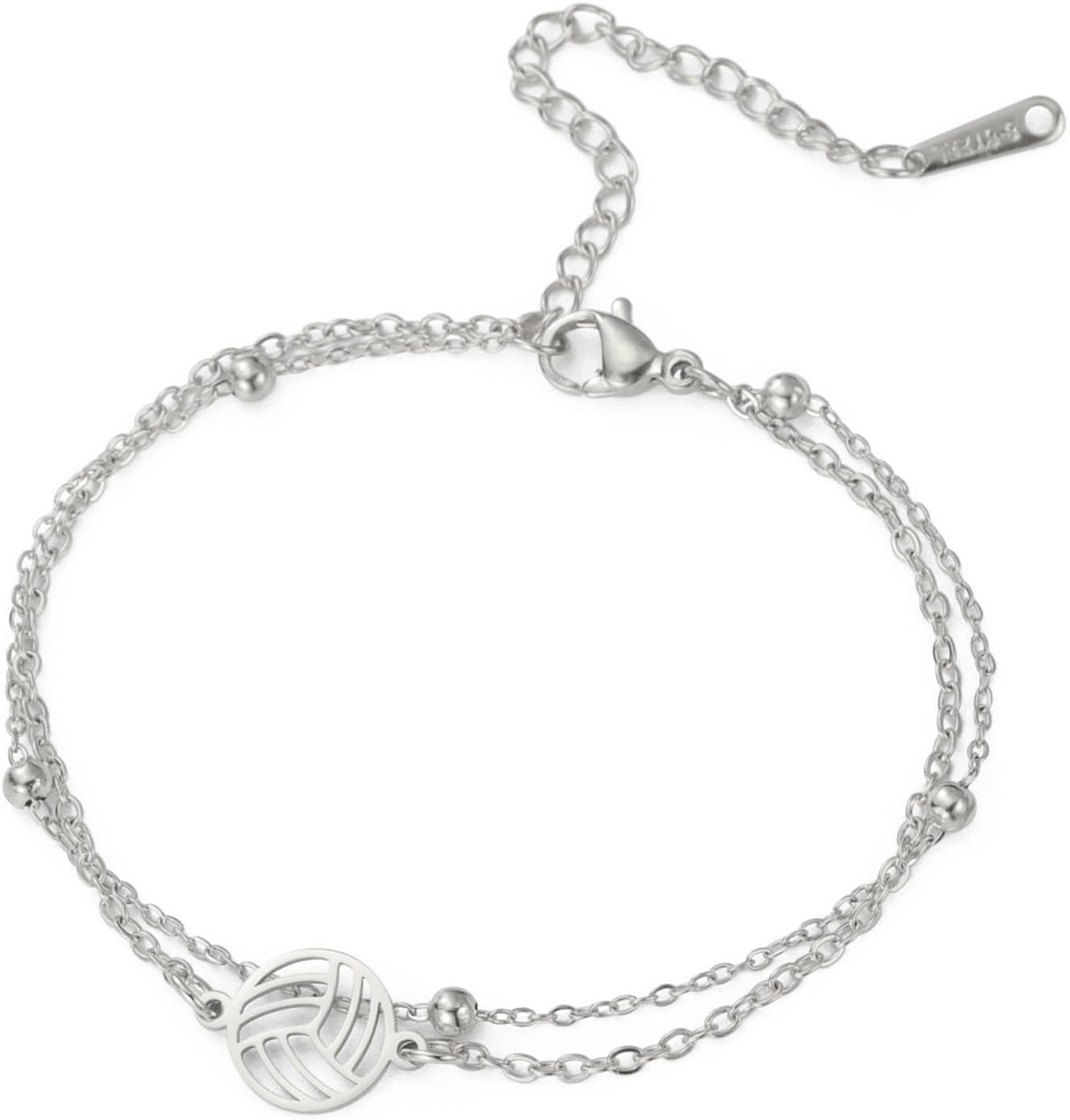TEAMER Dainty Volleyball Pendant Bracelet Resizable Volleyball Double Chain Bracelet Trendy Sport Ball Jewelry For Team Athlete Coach Volleyball Lovers
