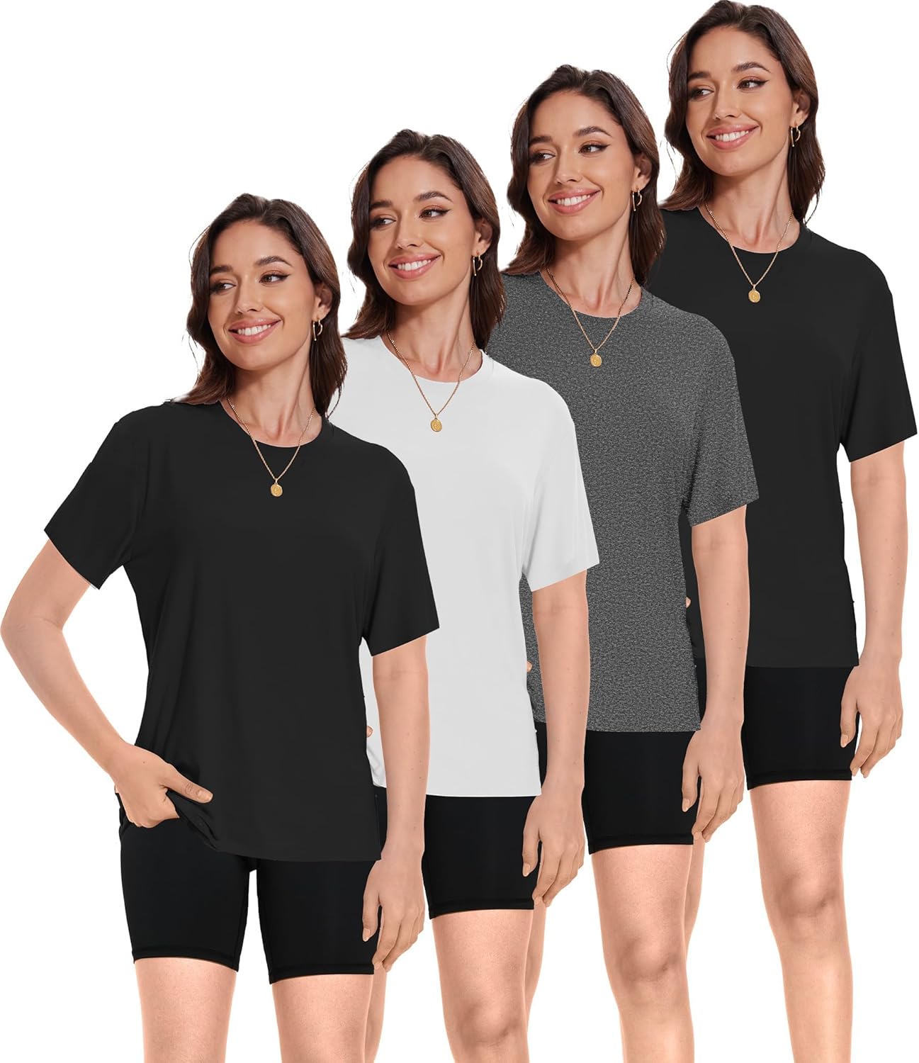 4 Pack Stylish Women's Short Sleeve Top for Casual and Sporty Looks