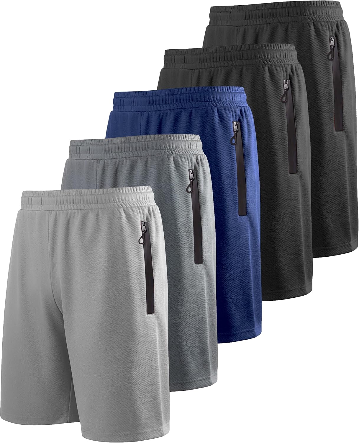 RPOVIG Men's Workout Shorts Sets 5 Pack with Zippered Pockets Basketball Gym Activewear Athletic Mesh Shorts