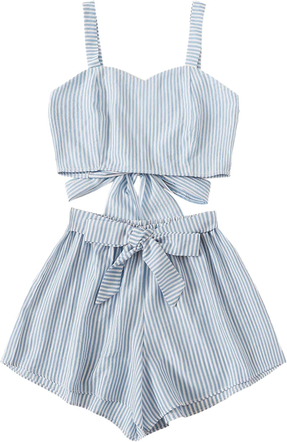 SweatyRocks Women's 2 Piece Outfits Summer Sleeveless Tie Back Crop Cami Top and Shorts Set