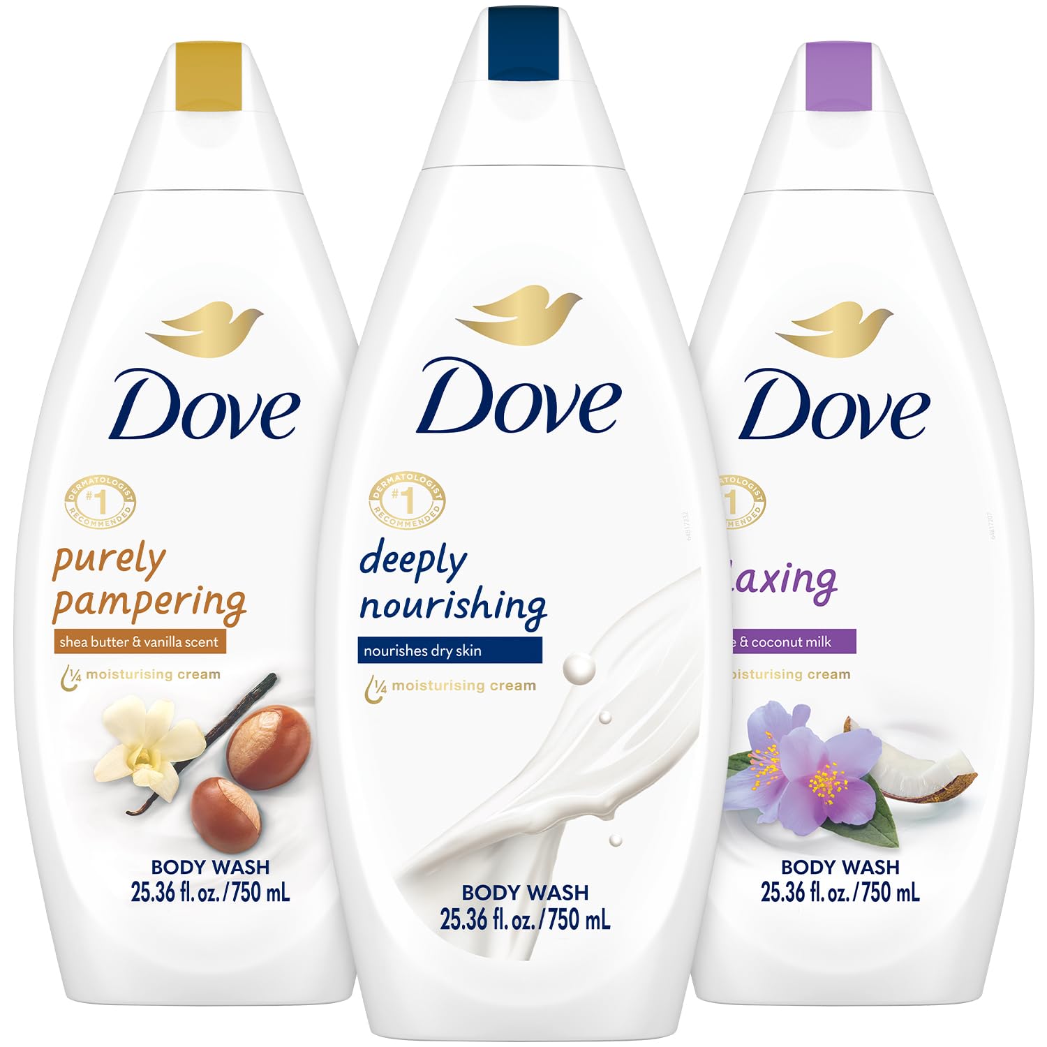 Dove Body Wash Variety 3-Pack – Pampering, Relaxing & Deeply Nourishing for Softer, Smoother Skin, 25.3 Oz Ea