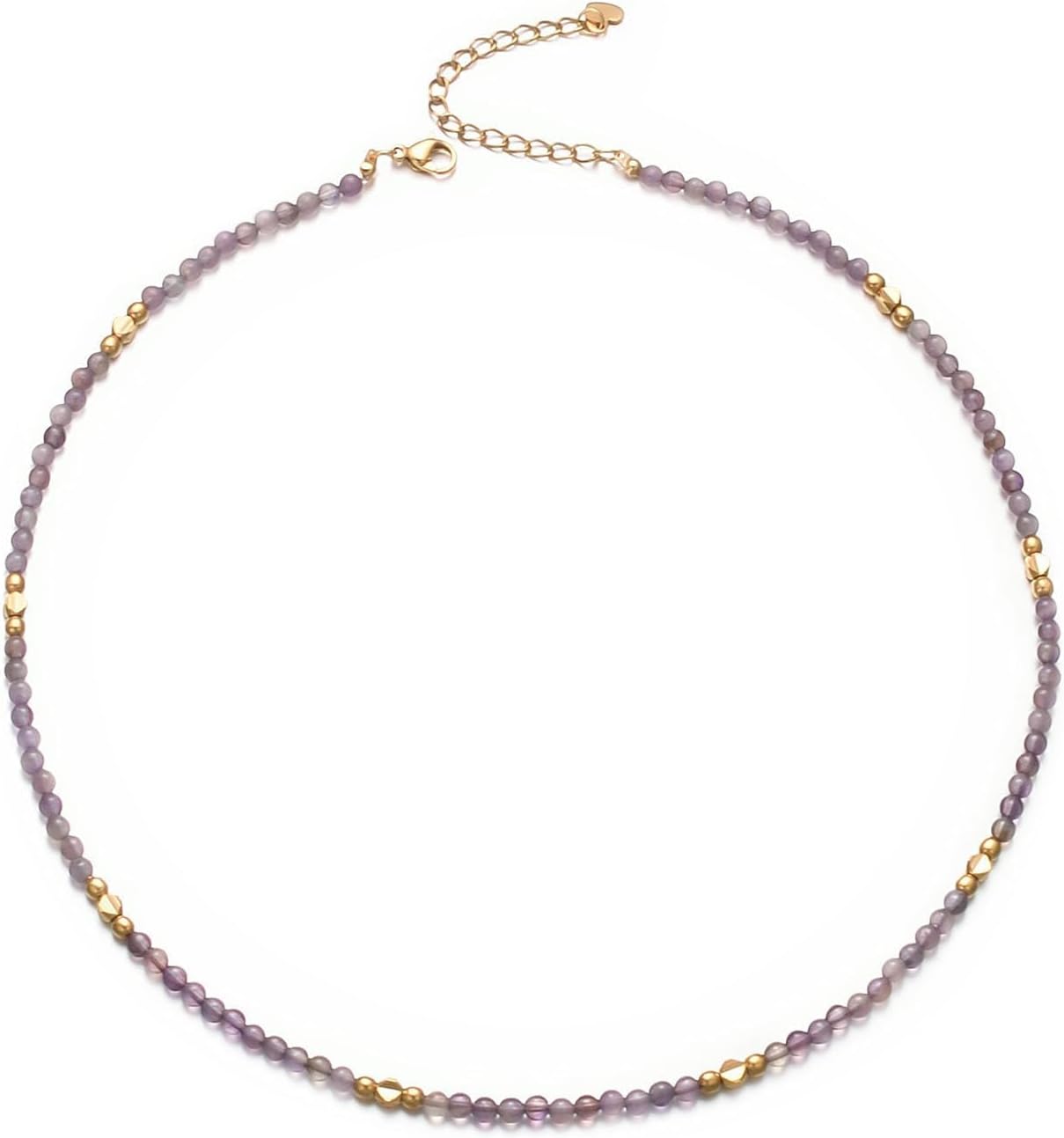 Aleasha Gemstone Beaded Choker Spinel Lapis Lazuli Amethyst Turquoise 14" Necklace for Women Gold Stainless Steel Handmade Strand Boho Jewelry