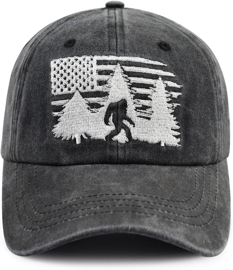 Bigfoot American Flag Hat for Men Women, Funny Adjustable Cotton Big Foot Sasquatch Patriotic Baseball Cap