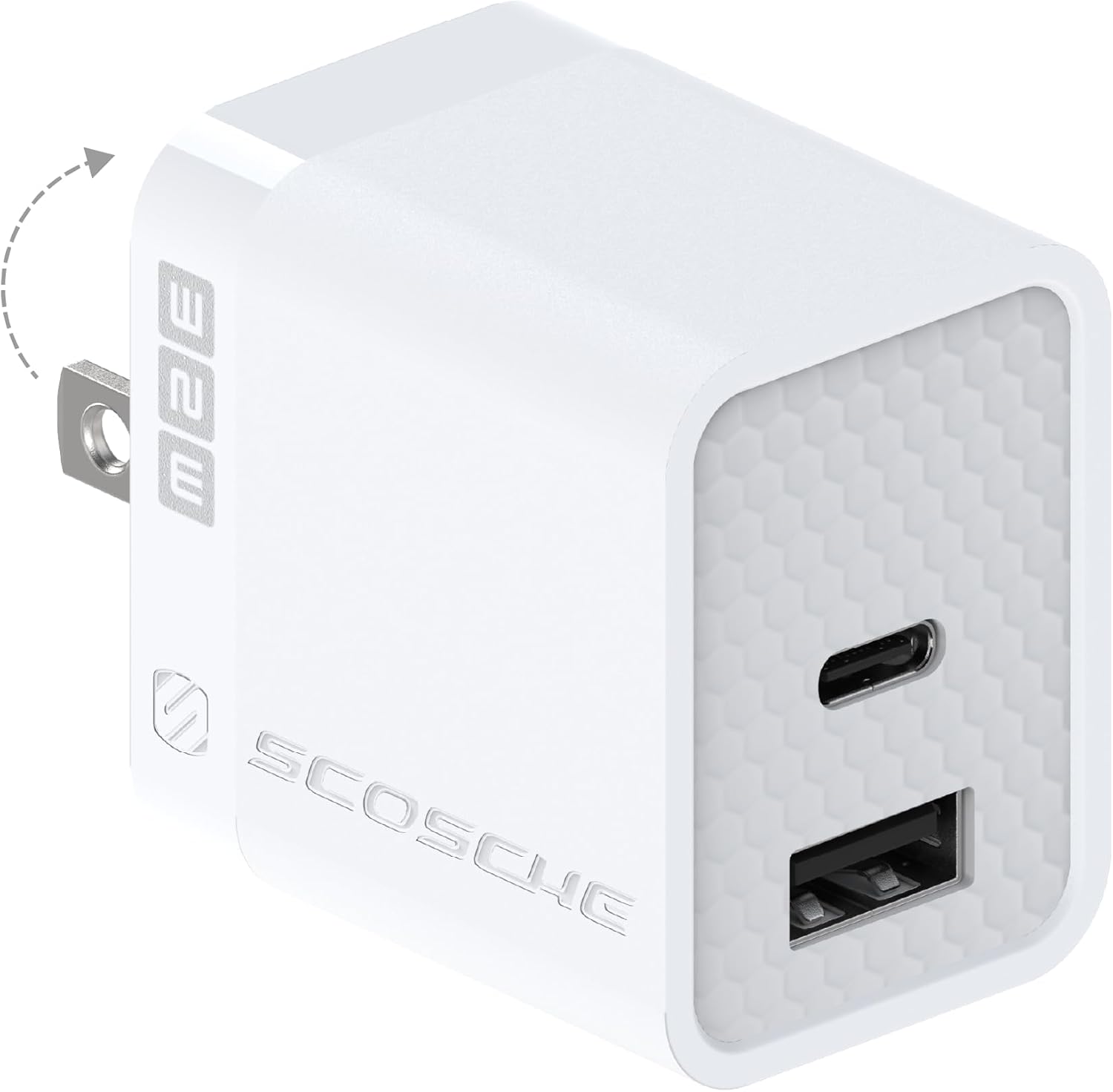 Scosche HPDCA32WT-SP PowerVolt 32W Certified USB Type-C + USB Type-A Fast Wall Charger Power Delivery 3.0 for All USB-C and USB-A Devices, White