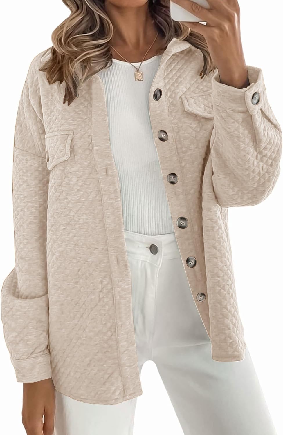 Women's Casual Long Sleeve Shacket Jackets Button Down Lightweight Shirt Loose Outwear Coats with Pockets