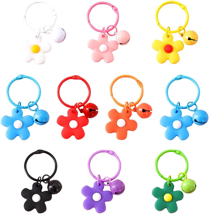 TENDYCOCO Flower Bell Keychain with Colorful Small Flower Charm and Ring Bells Cute Keyring Accessory for Women S Bags and Keys 2.16X0.86X0.39 Inch