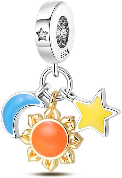 Nbsameng S925 Sterling Silver Charms Compatible for Pandora Bracelets and Necklaces, DIY Holiday Gifts for Women Sun & Moon & Star