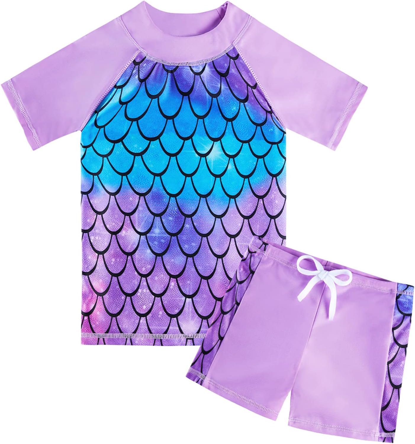 Lovekider Girls Swimsuits Two Piece Rash Guard Set Short Sleeve Bathing Suit Liner Swimwear with Sun Protection 3-12T