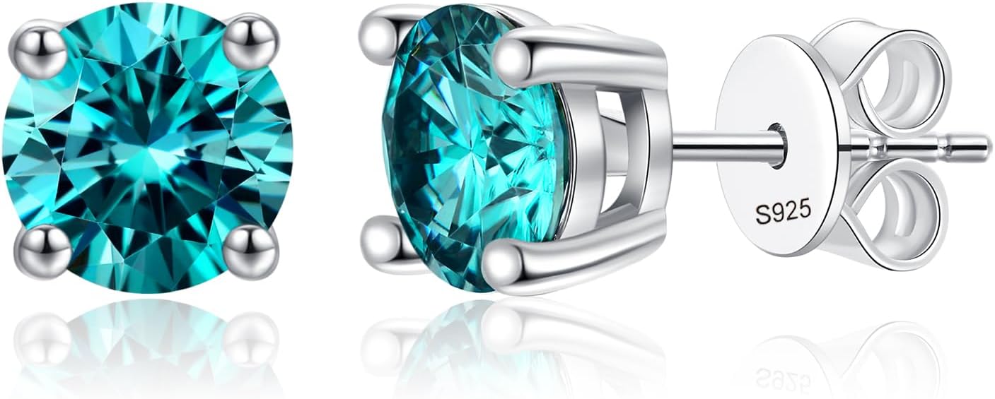 Moissanite Stud Earrings, 1-2 CT Diamond Earrings 18K White Gold Plated/S925 Sterling Silver Earring(Blue/Yellow/Green)