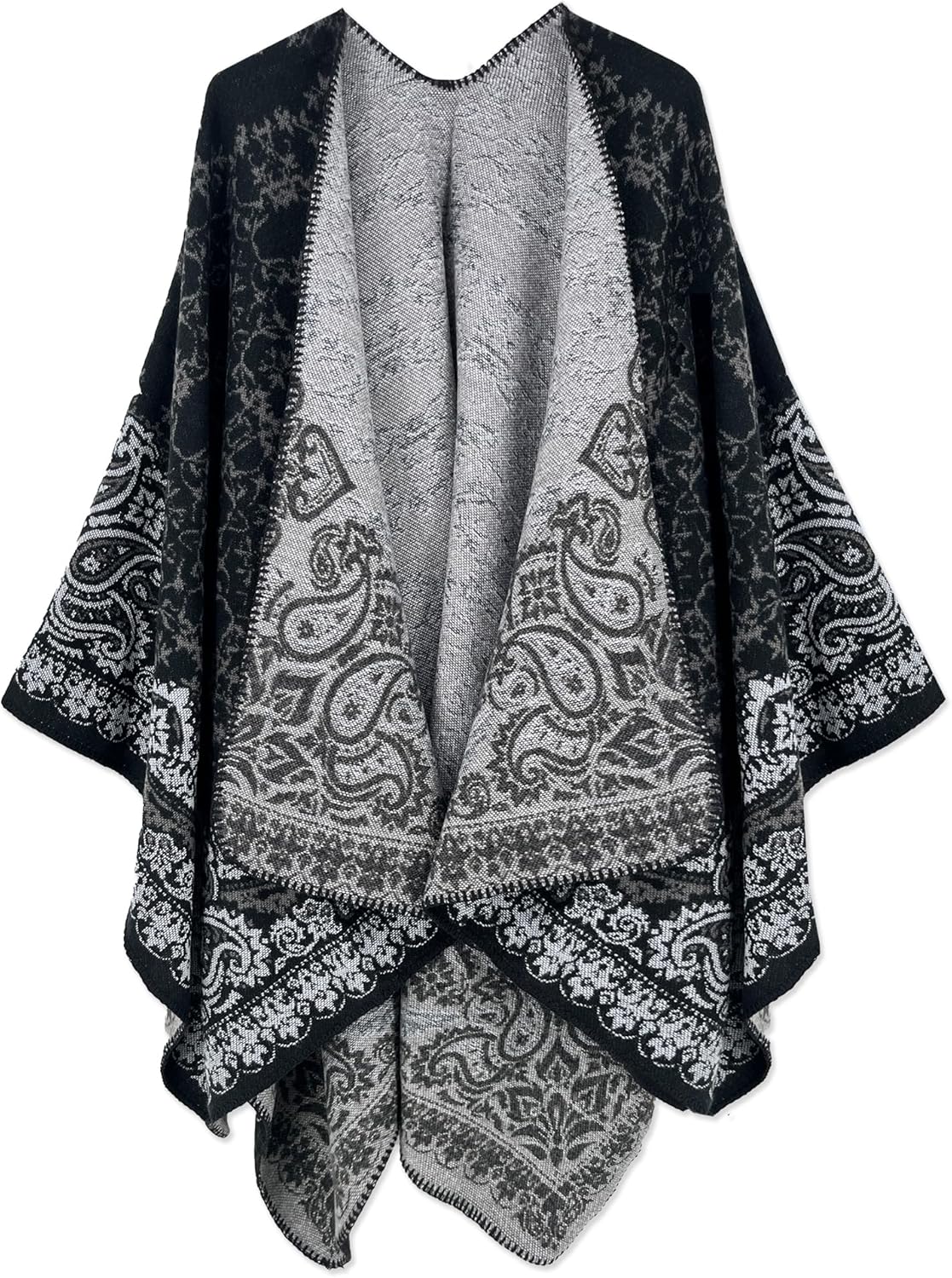 Beautiful Nomad Women's Retro Style Poncho Cape Boho Shawl Wraps Ruana Printed Tassel Cardigan for Spring Fall Winter