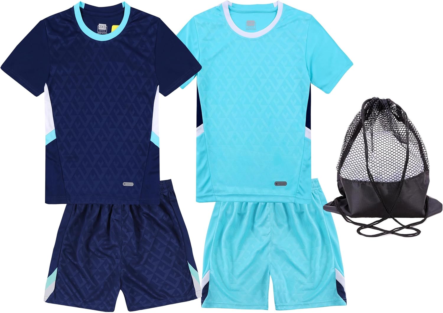 Hiheart Boys 2 Pack Soccer Jersey Set Team Sports T-shirt and Shorts with Mesh Ball Bag