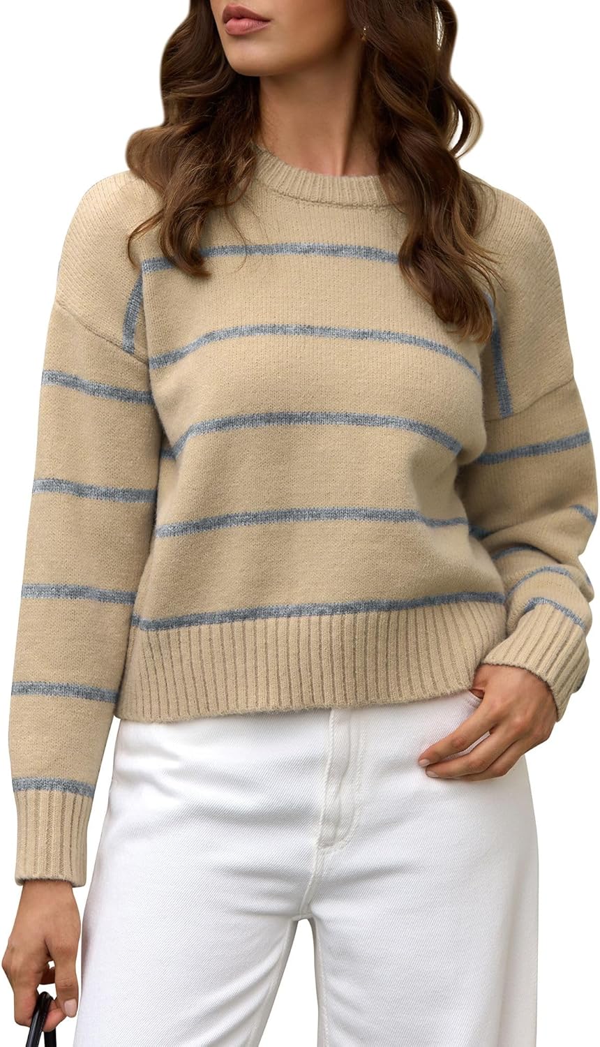 ZAFUL Womens Sweater Long Sleeve Crewneck Soft Basic Knit 2025 Fall Loose Fit Pullover Tops