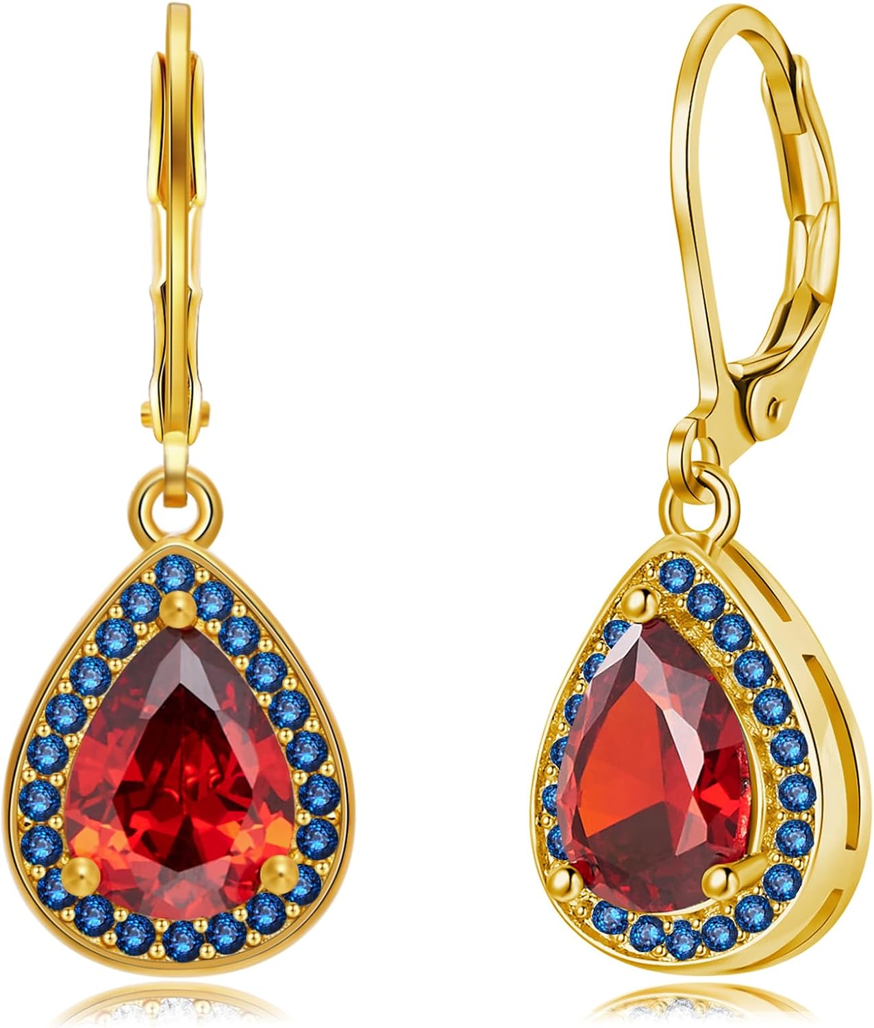 Leverback Dangle Earrings for Women Trendy Multicolor Pear Cubic Zircon Earrings Birthstone Teardrop Drop Earrings Jewelry Gifts for Everyday Party Wedding 14K White Gold | 24K Gold Plated