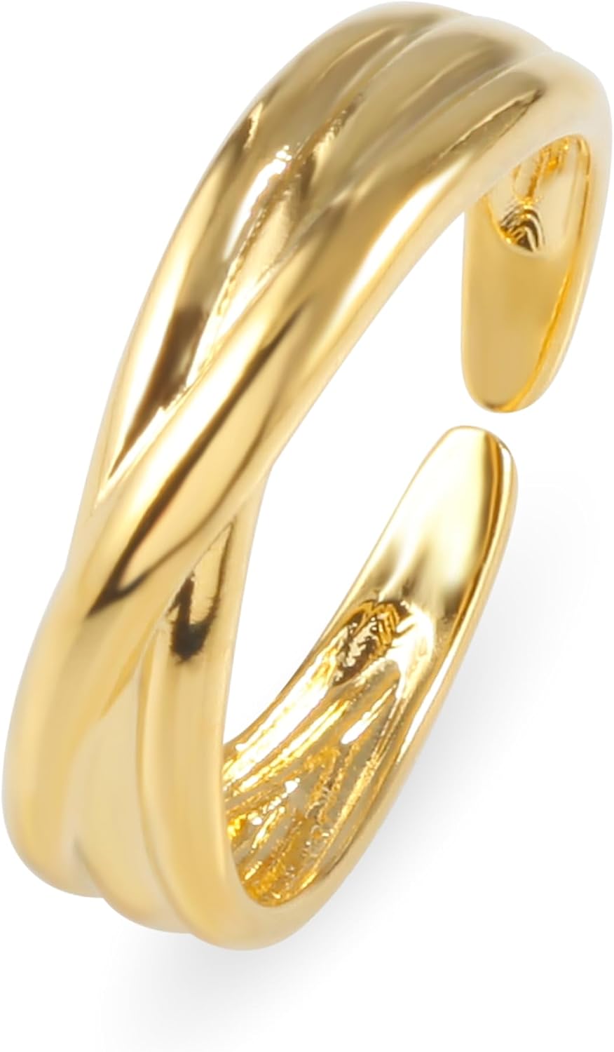 MUSTHAVE 18K Gold Plated Twist Cuff Ring for Women | Open Ring, Stack, cross, Lightweight, Yellow Color, Fashion Jewelry for lady