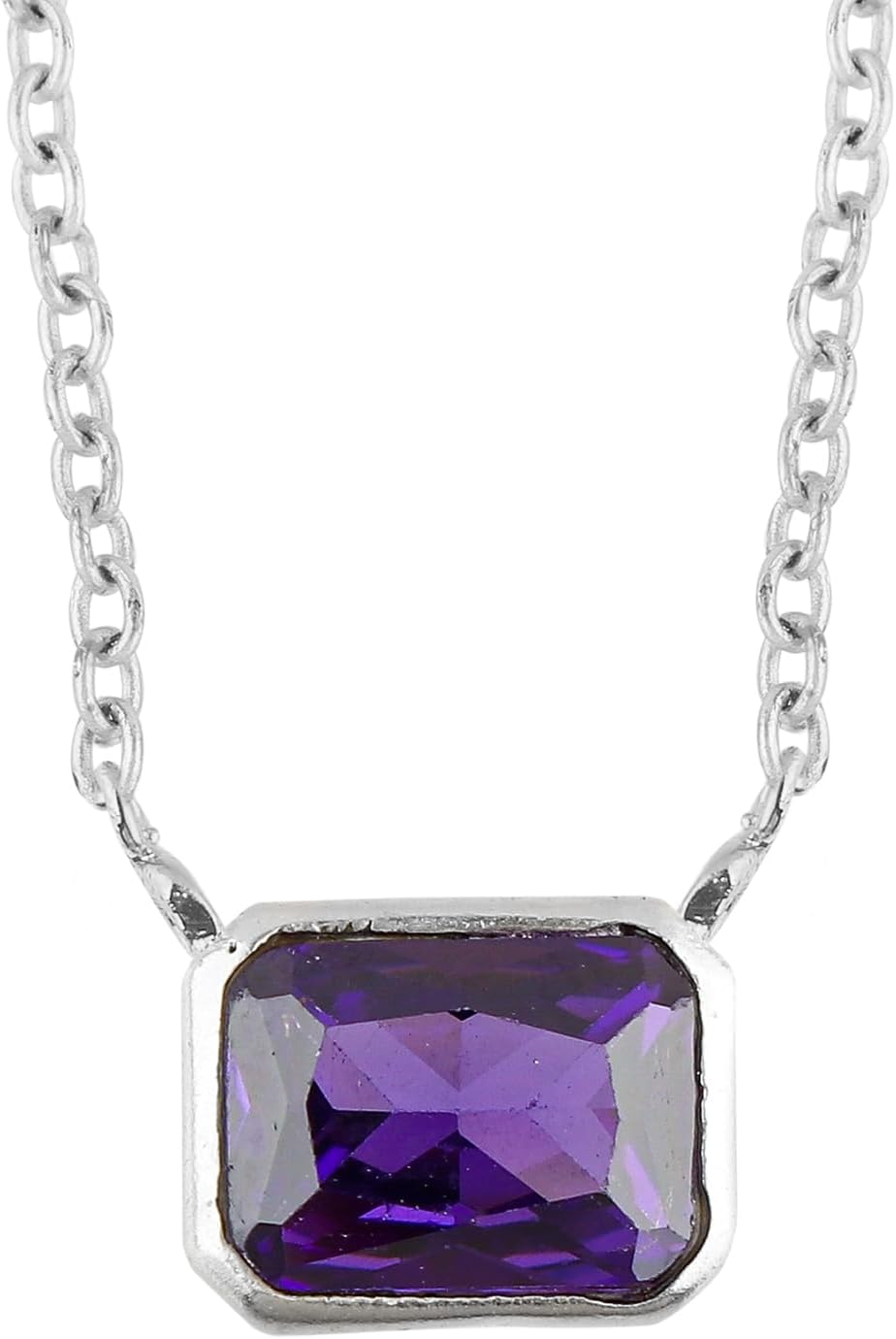 Silver Plated Crystal Pendant Necklace for Women | Rectangular Stone on Elegant Chain | Minimalist Party & Daily Wear Jewelry Gift | Adjustable Chain 16+2 Inch