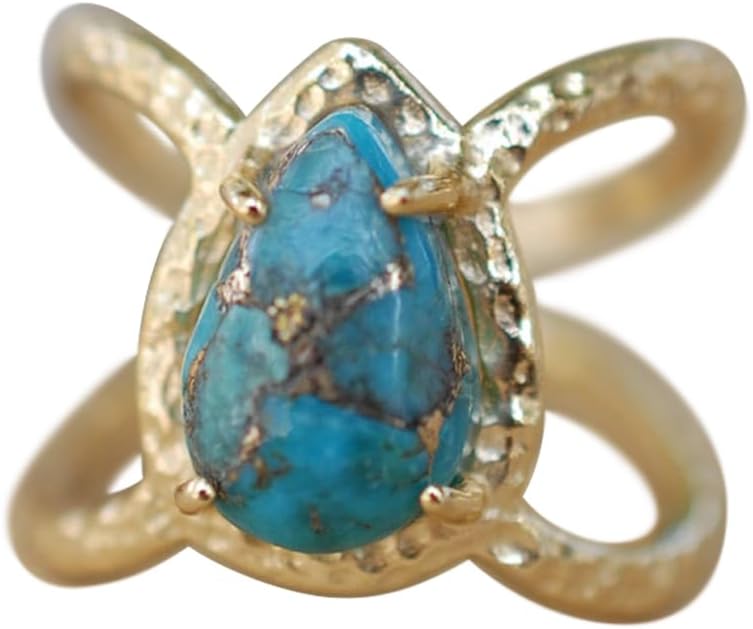 Retro Simple 18K Gold Plated Inlaid Teardrop Pear Shaped Turquoise Ring Size 6-10,Large Birthstone Ring or Statement Ring(8)