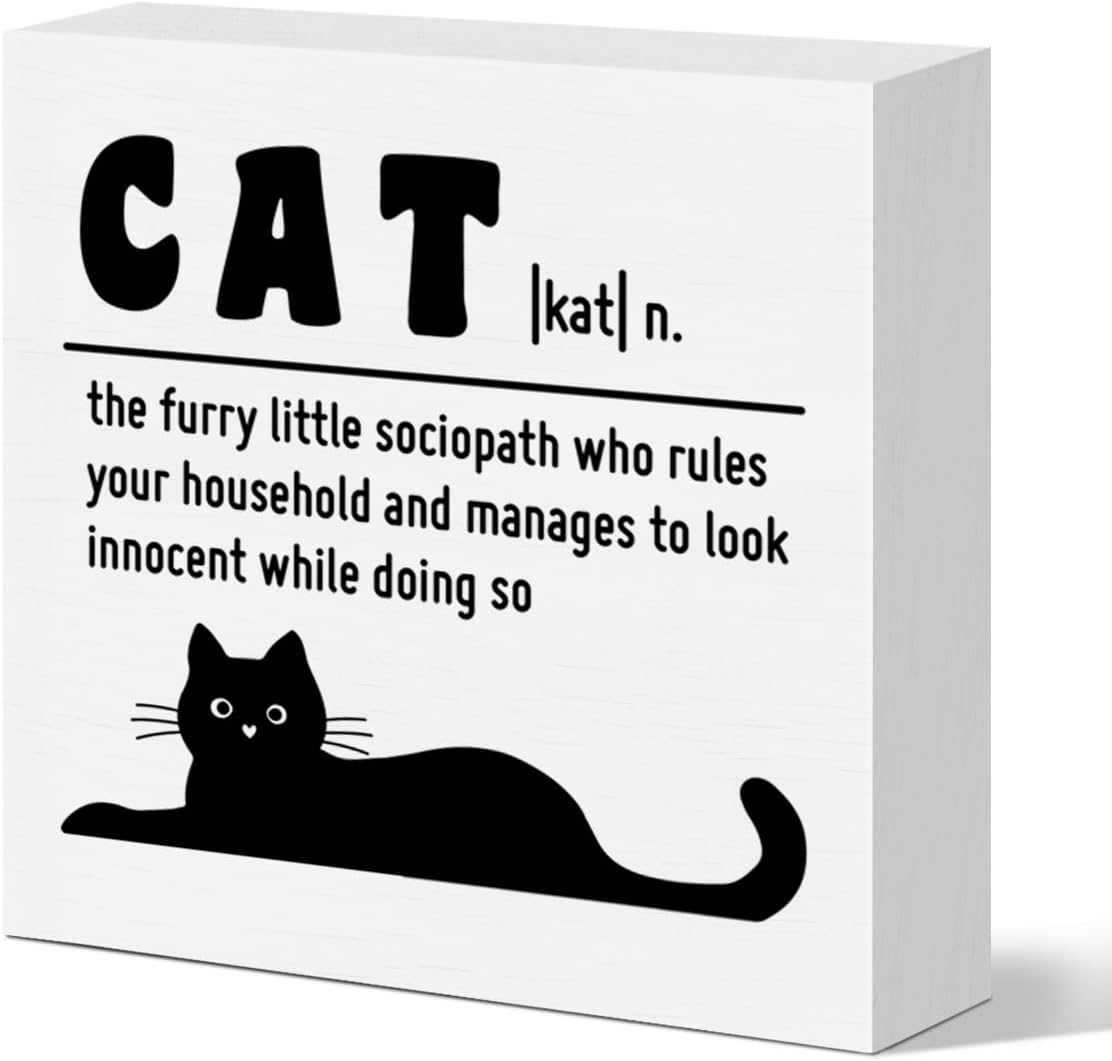 Funny Cat Desk Decor Sign, Cat Lover Decor for Bedroom Cat Room Home Office Kitty Themed Tabletop Decoration Wooden Sign Gifts for Women Men Cat Lover Owner Dad Mom, The Furry Little Sociopath