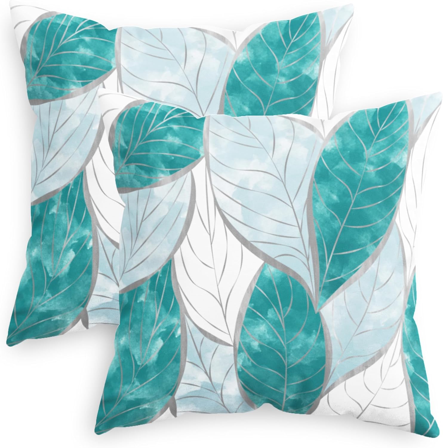 CaliTime Throw Pillow Covers Decorative 18 X 18 Inches Pack of 2 Cozy Fleece Watercolor Vibrant Leaves Cushion Cases for Couch Bed Sofa Farmhouse Decoration Teal Blue