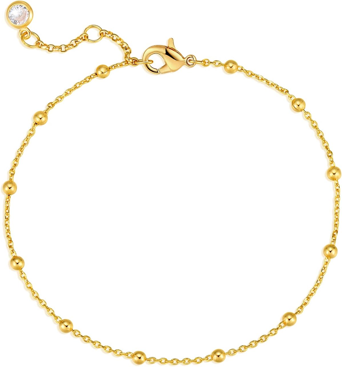 MEVECCO Gold Beaded Bracelets,18K Gold Plated Handmade Cute Satellite Diamond Cut Oval and Round Beads Rope Chain Dainty Bracelet for Women