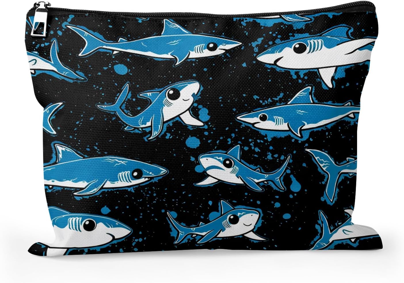Cafl Underwater World Shark Makeup Bag Shark Toiletry Bag Cosmetic Bag for Women Large Capacity Makeup Bags Travel Toiletry Bag Accessories Organizer 10 * 8in