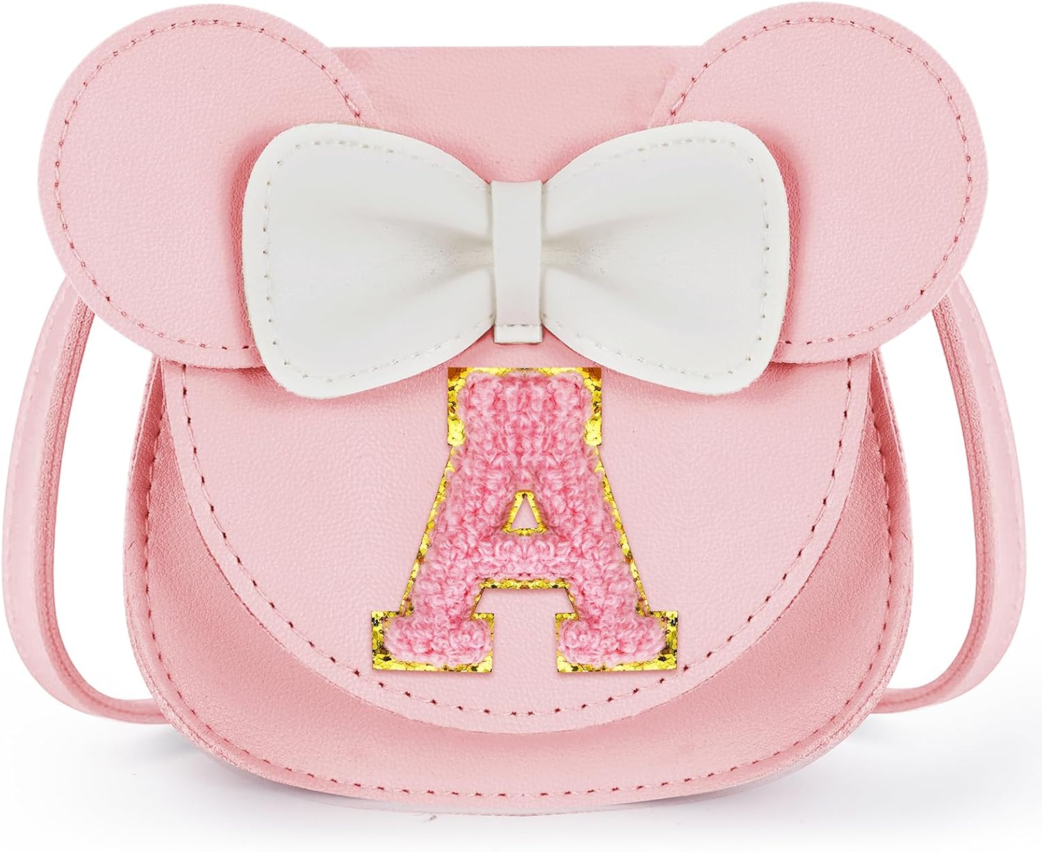 Toddler Purse Gifts for Girl Kids Little Initial Mouse Ears Bow Crossbody Bag Pink Cute Pu Shoulder Handbag