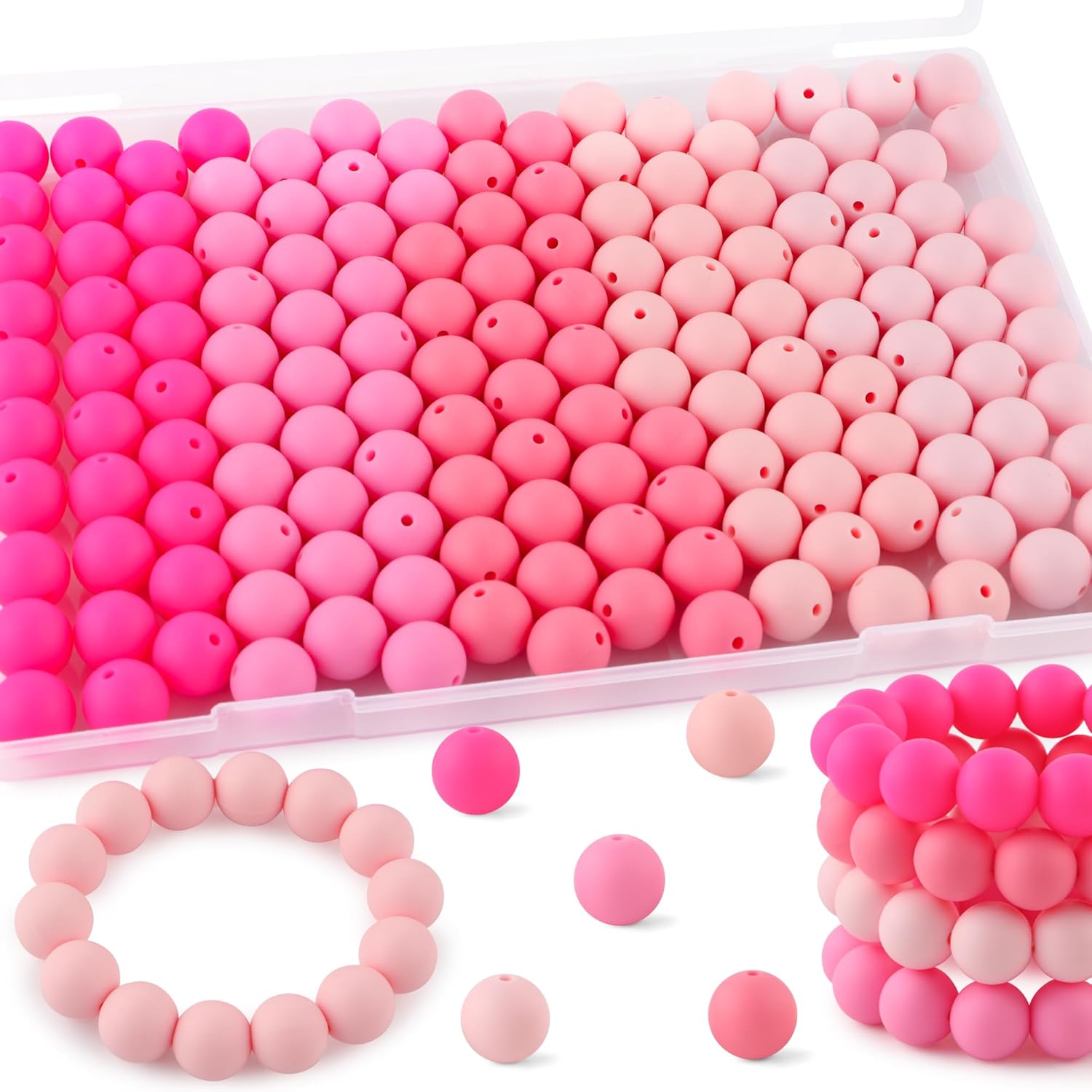 150Pcs Silicone Beads 15mm Mix Color, Bulk Silicone Beads 15mm for Keychain Pens and Bracelet Making(Pink)